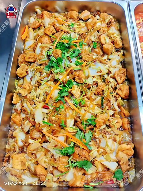 自選菜品窗口里,餐品種類繁多、琳瑯滿目。從鮮嫩的肉類到清爽的蔬菜,從香醇的湯品到精致的點心,色香味俱全,令人垂涎欲滴。
