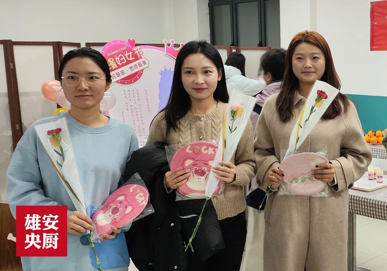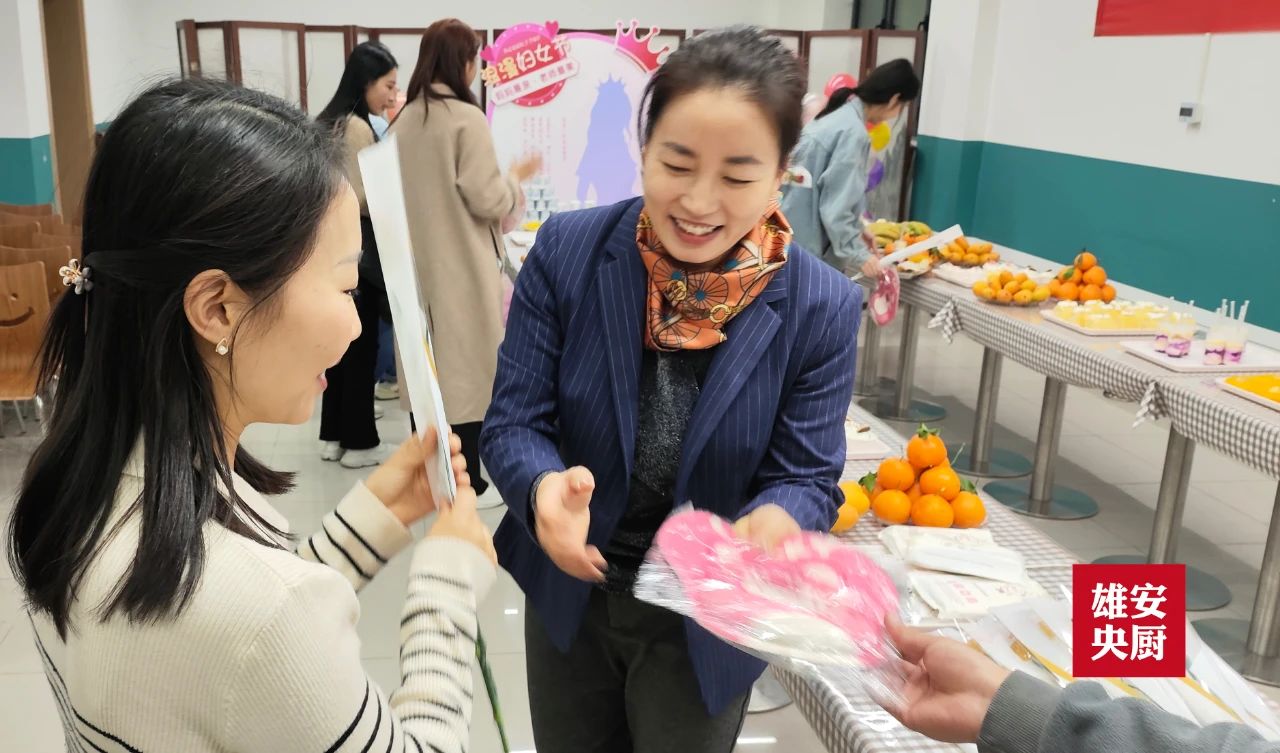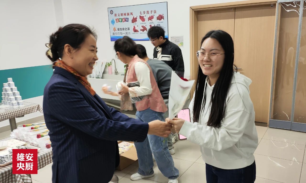 當女教師們走進活動現場時,雄安央廚的團隊成員們立即迎上前去,為她們獻上精心挑選的鮮花,并送上誠摯的祝福。